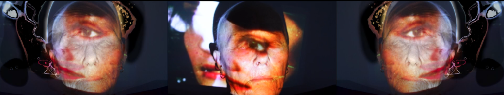 An audience immersed in three screens to feel the encasement of illness, the isolation of the material body. The forever ongoing chain of film runs but cannot hold up the protagonist. Time is flexible as the body transforms and the film loops. A trilogy of the self, witness of decline and suffering, performing the unthinkable, inevitable, dance of death. Three surrounds, enfolds, embraces the one who cannot stand alone. We, as human beings on a small globe, united by evolutionary structure and biological DNA have a chance to come together through the experience of empathy and identification with the sensitive body. An unspoken plea for viewers to engage with compassion, to experience vulnerability, to know through evidence this body is their body.