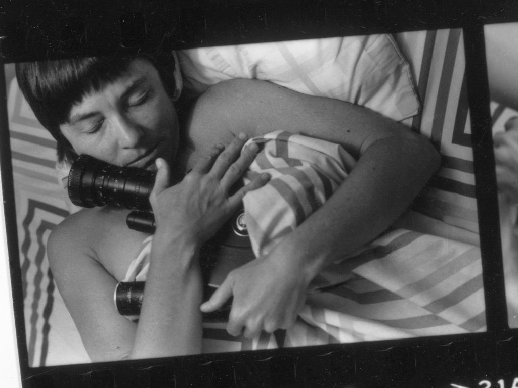 “How could I show intimacy with my camera? I took the camera to bed with me and cuddled,” Barbara Hammer said of this photograph, taken in 1981, early in her career as filmmaker who celebrated lesbian sexuality and history. Credit: Crystal Chan