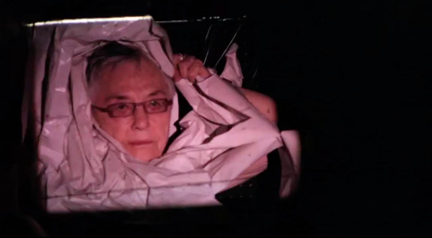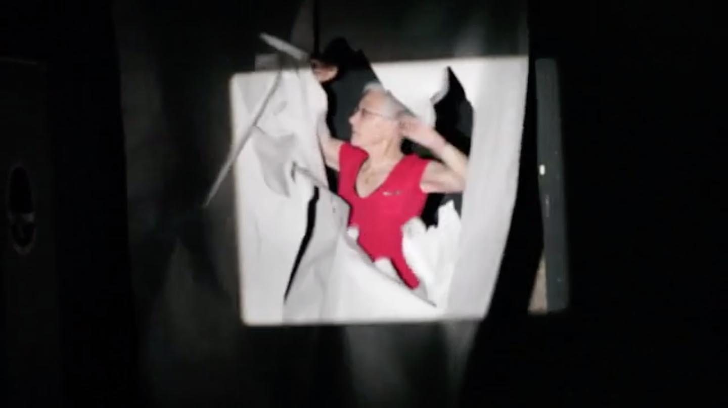 AVAILABLE SPACE is a film made for performance on a 360 degree rotary projection table. A woman breaks through confining architectural space, the limited space of a film frame, and the boundaries of a movie screen. Unexpected angles, corners, slants, floor and ceiling are engaged in unexpected play and projection. The sculptural surfaces of the interior of the Hamburger Banhof Aktionsraum are explored asking the audience to leave their seats to see the film.